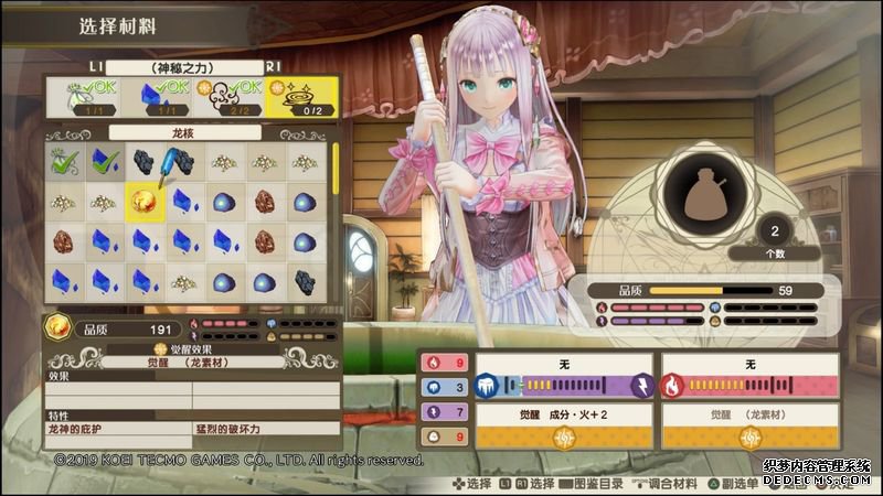 调合系统的弹性依然很大,不过现在是上限很高,但下限并不显得那么低。对于非核心玩家来说,除了特定任务外,一周目几乎不用去顾虑个别强力的特性和觉醒,从实用角度挑选简单高效的属性即可。调合本身是一个比较复杂的概念,可以理解为用各种素材道具来组合成一个新道具,新道具可以继承一些素材的属性,这其中又有依素材种类、品质等不同所带来的差异。但现在这个系统,如果只是想正常体验游戏,而不是追求“一击必杀”之类的核心玩法,那么基本上不用花太多的时间去研究。所以这样一个系统,我认为还是比较友好的,它做到化繁为简,以让新手能接受为基准,之后再进行由浅入深的步骤。