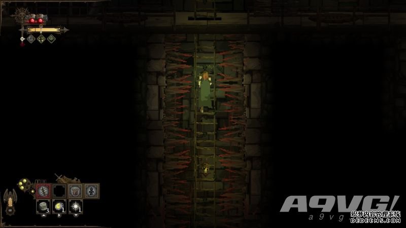 这里不得不吐槽一个过于硬核的设定,受伤后没有无敌时间。这是一个连锁反应的基点,当它发作时会让你死的叫屈。比如游戏中的陷阱,我不止遇到过一次直接被陷阱一套带走的情形,黑暗中突然甩出来一个拴着锯齿的大钟摆,你可能会想着“不就碰一下吗?”,但你没想到它会一次碰你好多下,而这个过程可能也就不到1秒,我甚至在爬一个两边满是针刺的场景时不小心掉下来结果被左右开弓活活弹死。这种情况也适用于被敌人包夹时,两边同时向你挥起屠刀而你却没有及时躲避,这时候等待你的就是下一个黑屏。